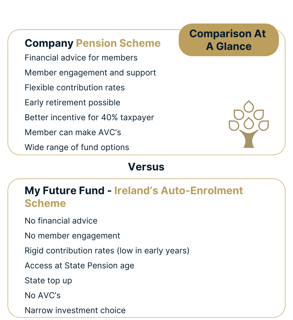 AE will have a serious impact on Irish employers when planning future hires. Mandatory pension contributions will have to be calculated and will increase costs while also adding to the administrative burden and impacting budgeting. Having a private pension plan in place provides flexibility in structuring contributions, ensuring cost control while enhancing the overall compensation package.